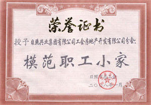 ·2008年,授予“日照興業(yè)集團有限公司工會房地產(chǎn)開發(fā)有限公司工會模范職工小家”