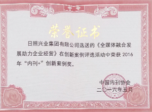 ·2016年5月,興業(yè)集團選送的《全媒體融合發(fā)展助力企業(yè)經(jīng)營》在創(chuàng)新案例評選活動中榮獲2016年“內(nèi)刊+”創(chuàng)新案例獎